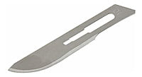 HOJA PARA BISTURI DE ACERO INOXIDABLE EMPAQUE INDIVIDUAL ESTERILES Y DESECHABLES. PIEZA DEL NUM 10 ENVASE CON 100 PIEZAS.