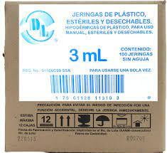 060.550.0222.11.01JERINGAS. DE PLASTICO SIN AGUJA CON PIVOTE TIPO LUER LOCK ESTERILES Y DESECHABLES. CAPACIDAD: 3 ML ESCALA GRADUADA EN ML DIVISIONES DE 0.5 Y SUBDIVISIONES DE 0.1. ENVASE CON 100 PIEZAS.